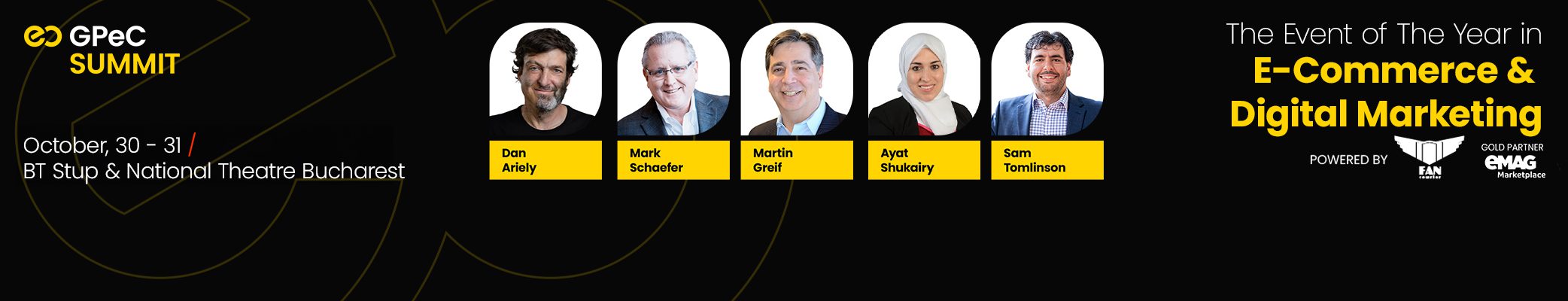 - October 31st, National Theatre of Bucharest - GPeC Conference: 1 full day of conference about everything that is in trend in E-Commerce and Online Marketing, alongside with well established international and Romanian experts and 700+ C-Level participants;